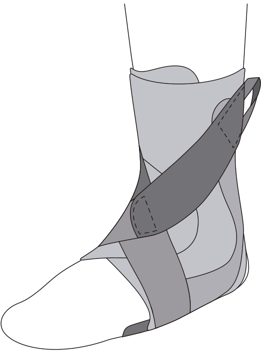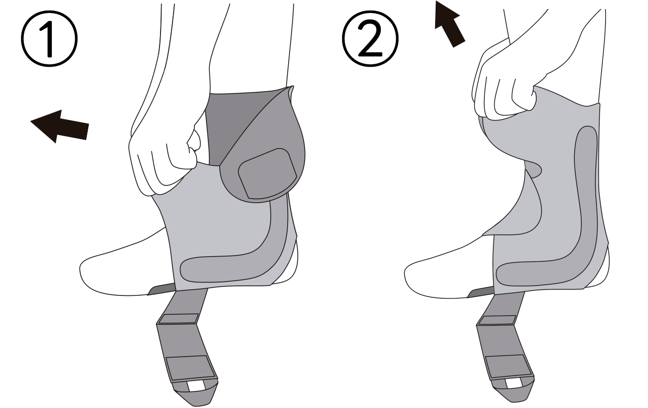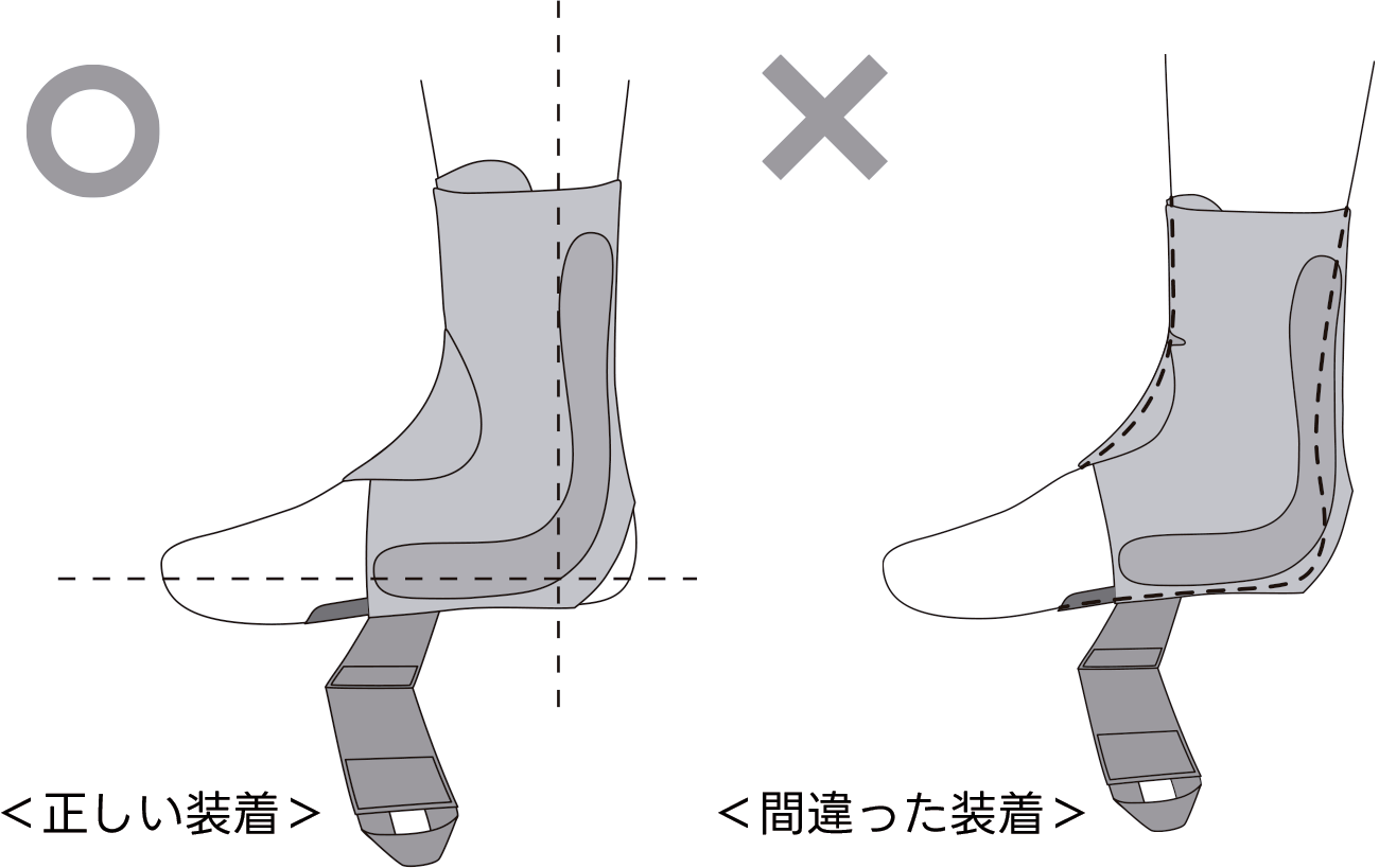 足を通さず後ろに折り畳んで装着すると、本体内面の滑り止めが機能せず、背屈支持力が低下します。