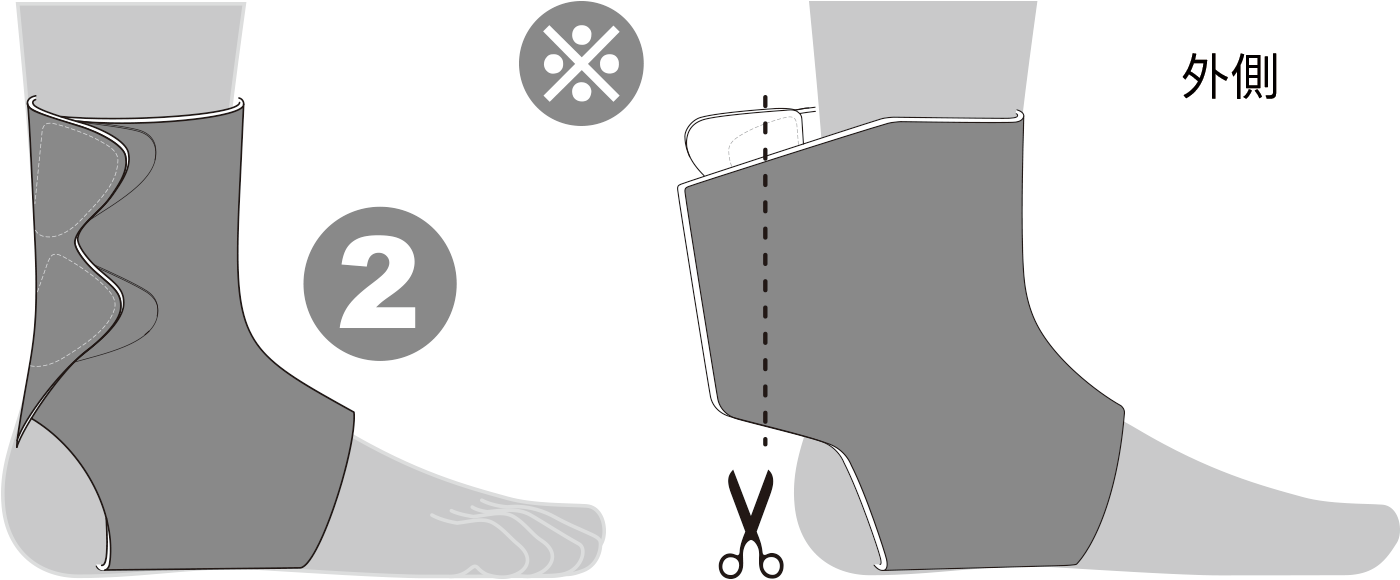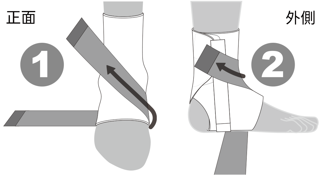 | 内反(外反)制限 [中] +底屈制限 [中] | フィギュアエイト 伸縮テープ2重(細+太) |